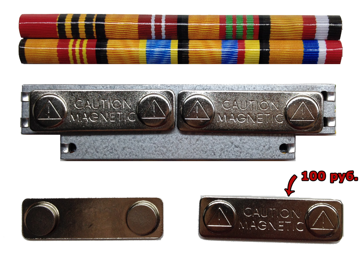 Магнитное крепление применяется на орденских планках от 2х наград.
